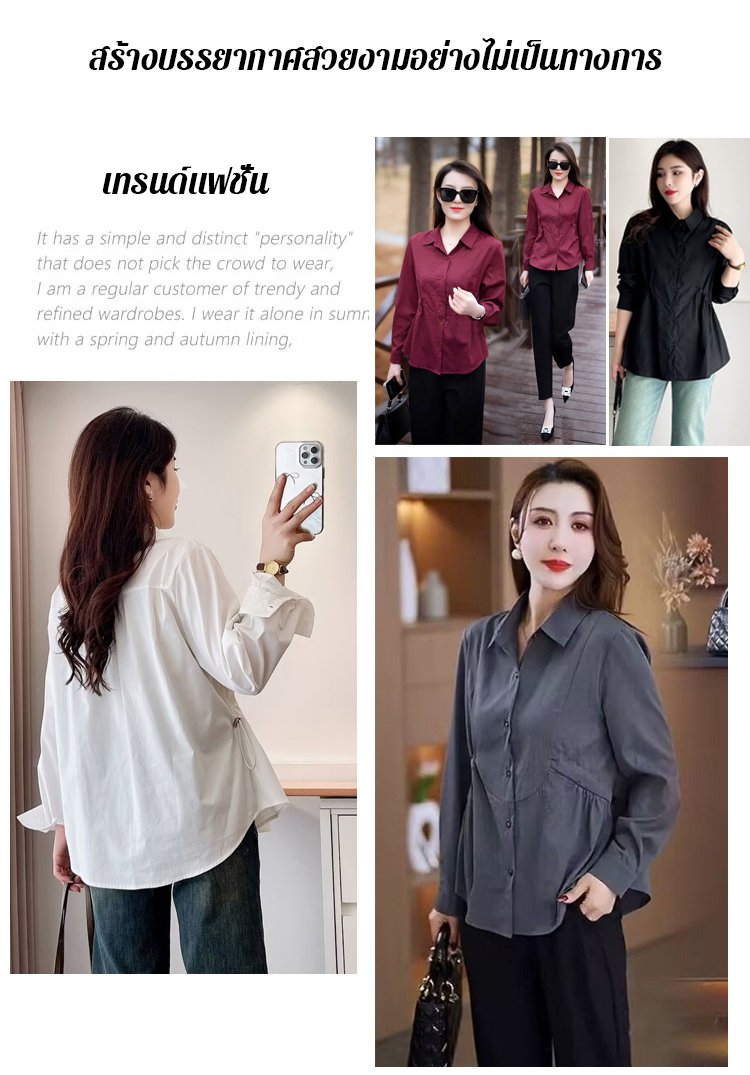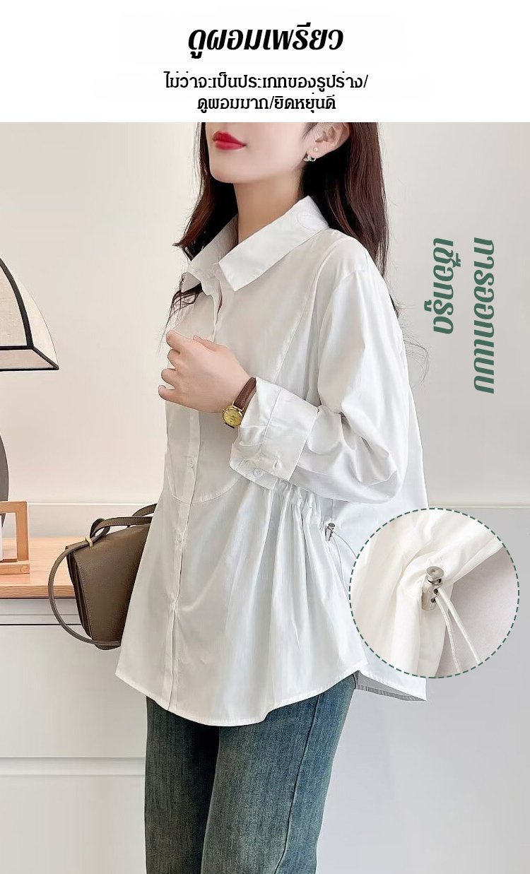 เสื้อเชิ้ตดีไซน์เรียบง่ายพร้อมเชือกรูด